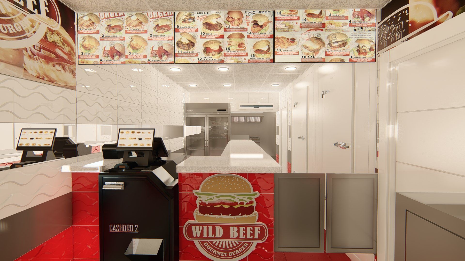 ButtonProyecto render 3D cocina hamburguesería Wild Beef