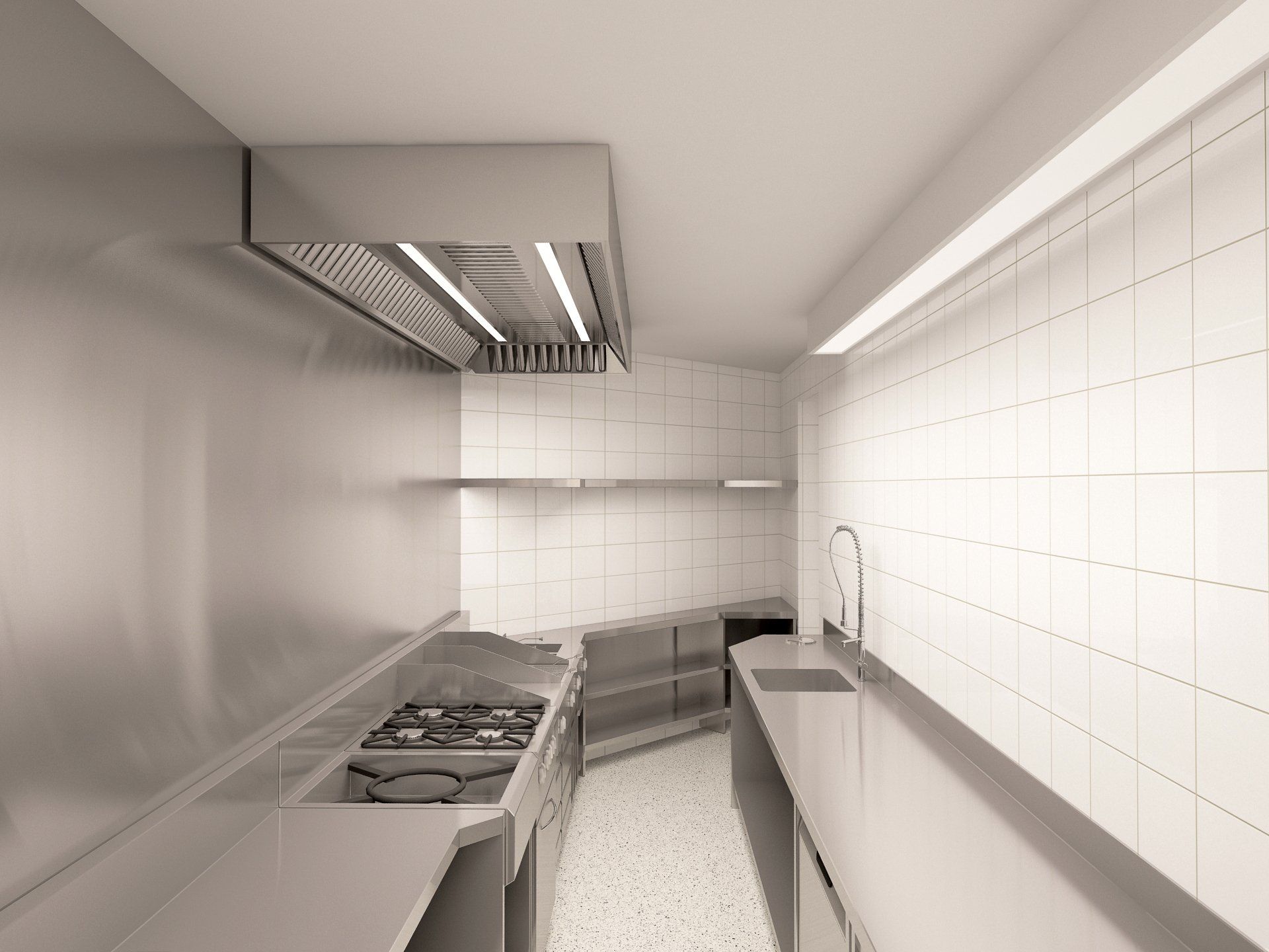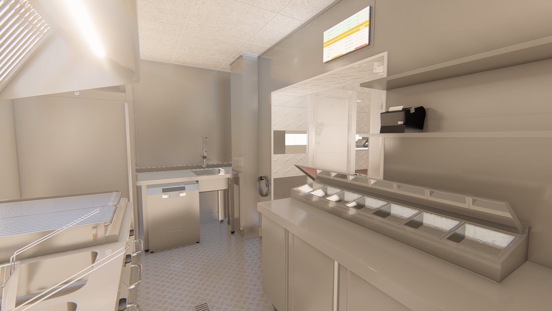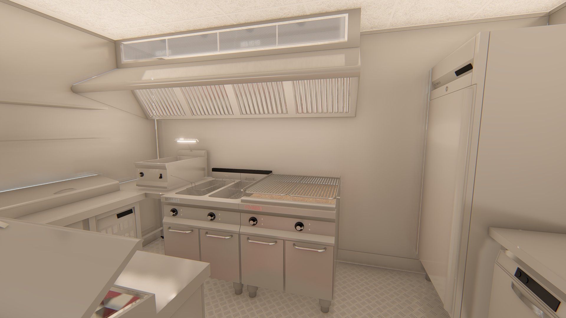 Proyecto render 3D cocina hamburguesería Wild Beef